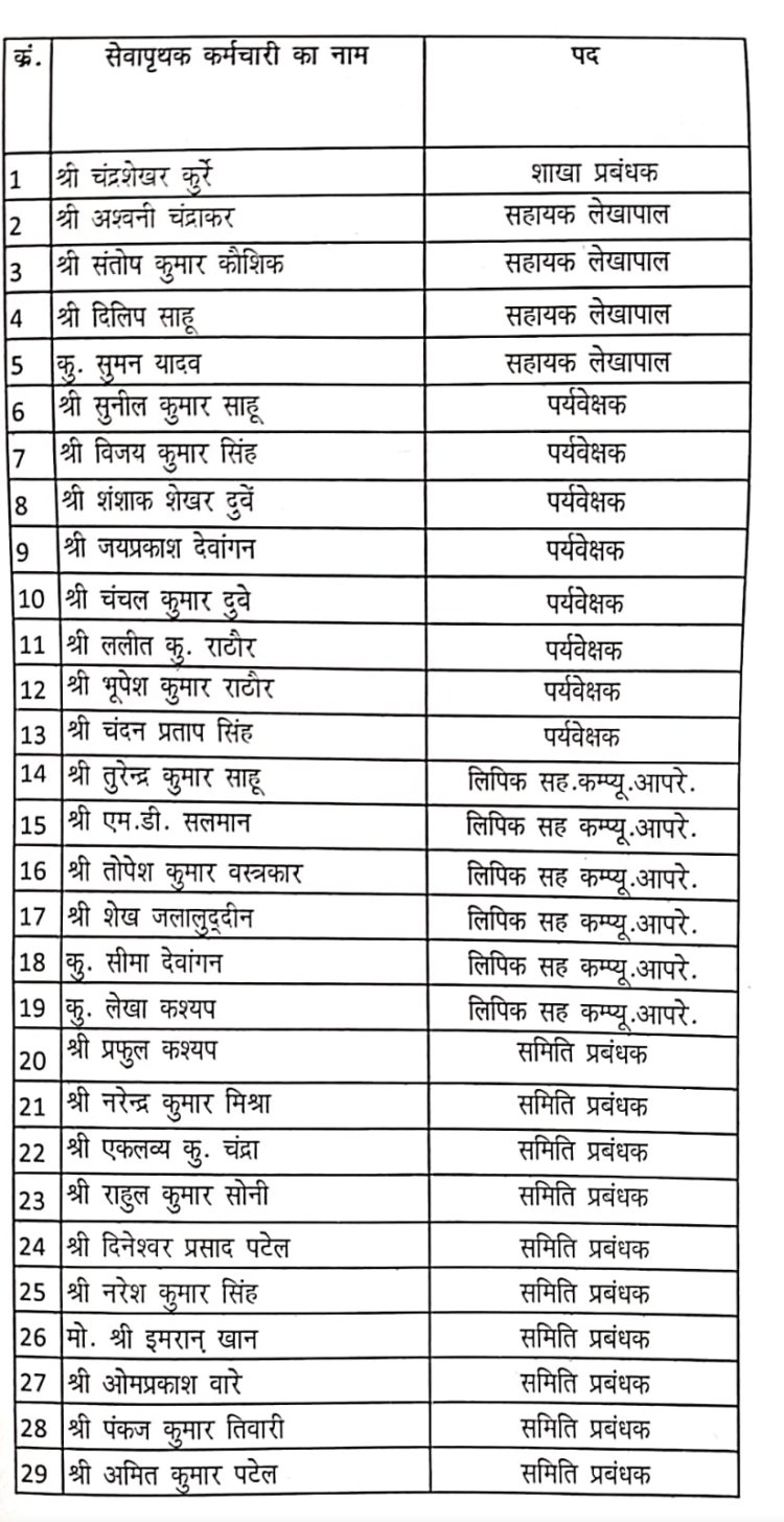 बिलासपुर । जिला सहकारी केंद्रीय बैंक बिलासपुर में हुई स्टाफ कमेटी की बैठक में दूषित प्रक्रिया में भर्ती हुए 29 अभ्यर्थीयो को पुनः बर्खास्त कर दिया गया है। आपको बता दें उच्च न्यायालय में पंकज तिवारी एवं अन्य कुल 29 पूर्व में बर्खास्त कर्मचारियों ने उच्च न्यायालय में पिटीशन क्रमांक 3346/2020 दायर किया। था, उक्त पिटीशन के विरुद्ध रिट अपील प्रकरण क्रमांक 307/2025 उच्च न्यायालय में दायर किया गया।
