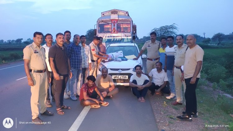 क्षेत्र मे देशी नकली शराब बनाकर तस्करी करने वाले 04 अंतर्राज्यीय तस्करों को किया गया गिरफ्तार, आरोपियों से 01 ट्रक वाहन 01 आल्टो कार एवं 35,000 बल्क लीटर स्पिरिट कुल कीमती 46,68,786 रूपये को किया जप्त