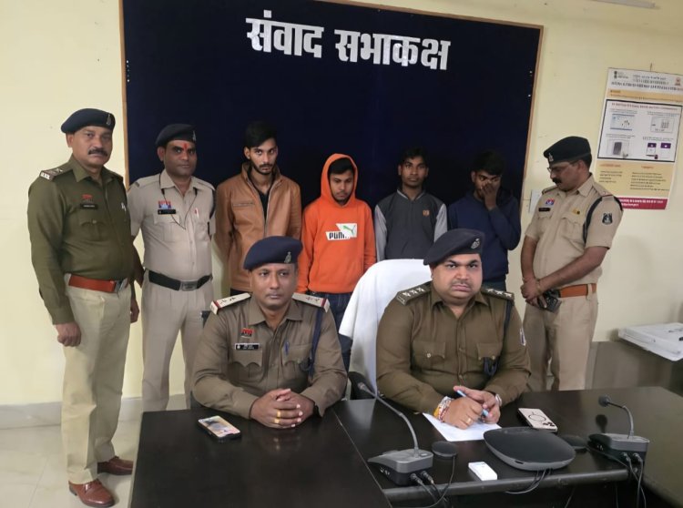 *गिरफ्तार आरोपी नाम -* 1.समीर भास्कर पिता बुधरूदास भास्कर उम्र 20 वर्ष 2. देवप्रसाद माथुर पिता मनोज माथुर उम्र 19 वर्ष 3. इन्द्रेश उर्फ सुरज बंजारे पिता माखन बंजारे उम्र 20 वर्ष सभी साकिनान ग्राम अतरगवां थाना नवागढ़ जिला बेमेतरा 4. मोहम्मद नवाब उर्फ अरमान पिता मोहम्मद नसीम उम्र 21 वर्ष साकिन हीरालाल वार्ड दाउपारा,लोरमी रोड मुंगेली थाना मुंगेली जिला मुंगेली (छ0ग0) व 01 अपचारी बालक